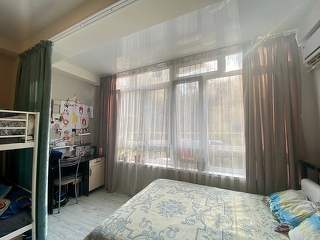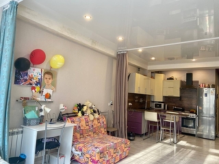 Продается просторная квартира-студия 51.5 м2 рядом с пляжем "Санта-Барбара". В квартире выполнен хороший современный ремонт. Оформлена как просторная студия с выделенной спальной зоной. Установлены теплые полы. Вид из окон во двор. Рядом остановка общественного транспорта. В пяти минутах ходьбы от дома санаторий "Октябрьский", на его территории находится зоопарк, крытый бассейн, открытый небольшой аквапарк. Пройтись до моря по ровной красивой дороге одно удовольствие и всего 400 метров. Пляж ухоженный, чистый, бесплатный. Очень удобно жить и отдыхать с маленькими детьми. Так-же покупая эту квартиру, вы делаете выгодное инвестирование, которое будет приносить круглогодичный пассивный доход. Магазины и супермаркеты в шаговой доступности. Развита транспортная доступность, доехать до центра можно за 15-20 минут. Полное юридическое сопровождение, звоните!