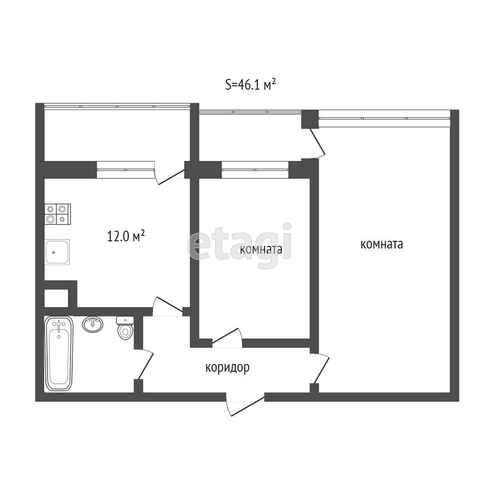 - Общая площадь46.1 м²
